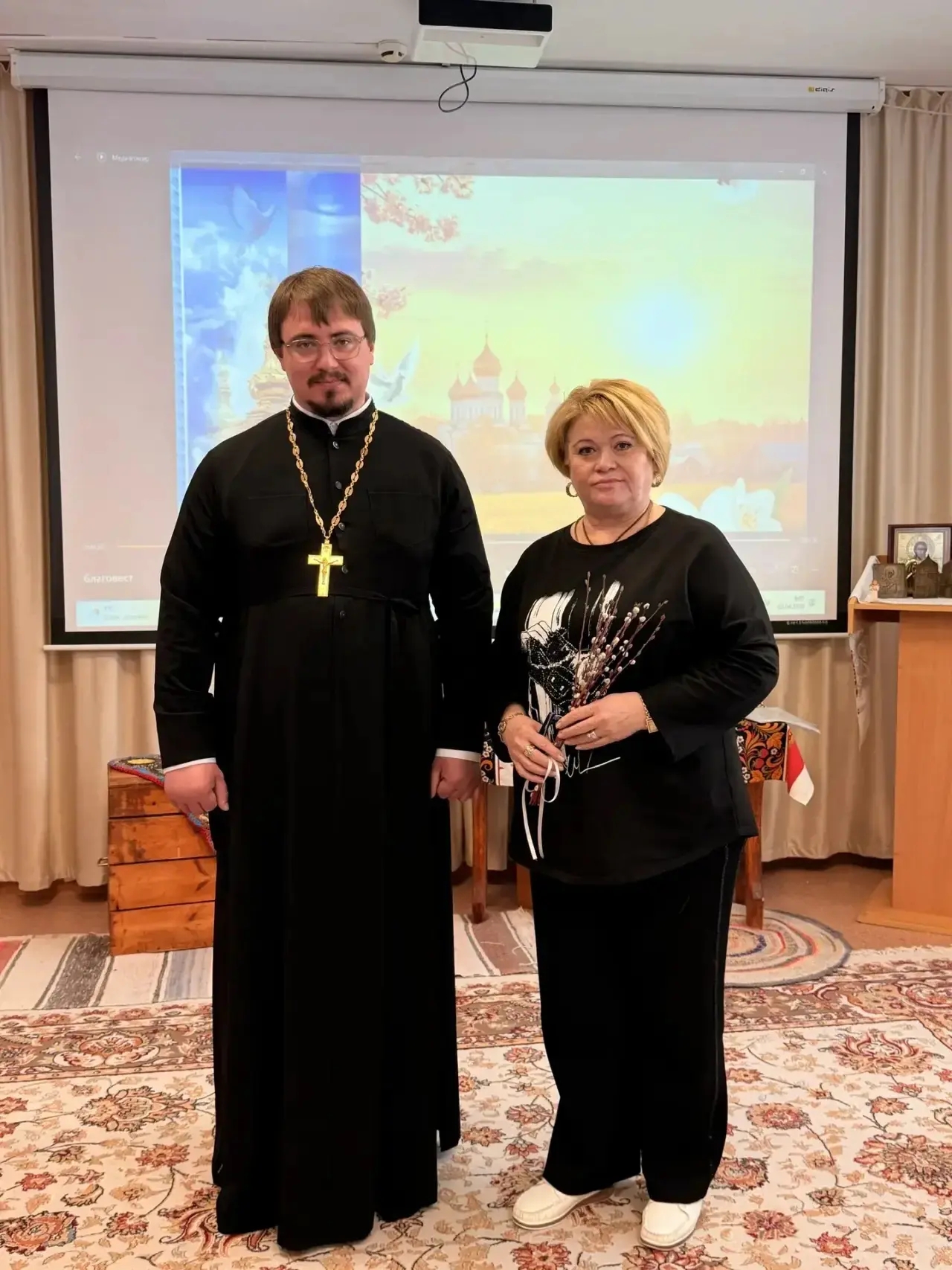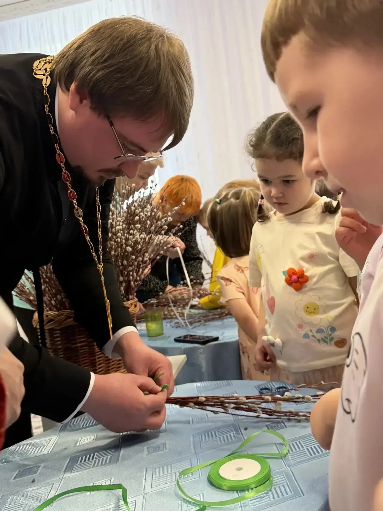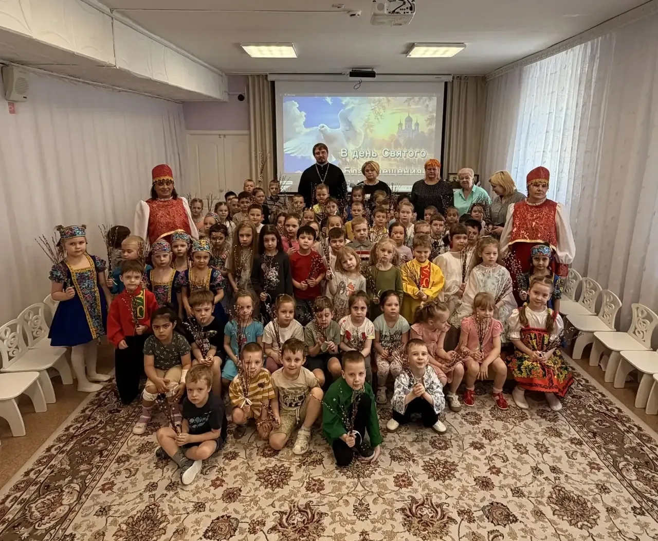 Священник рассказал ребятам о приближающихся праздниках Входа Господня в Иерусалим и Благовещения Пресвятой Богородицы. Силами воспитателей и детей был подготовлен праздничный концерт. В конце встречи ребята приняли участие в подготовке вербы к Празднику Входа Господня в Иерусалим.