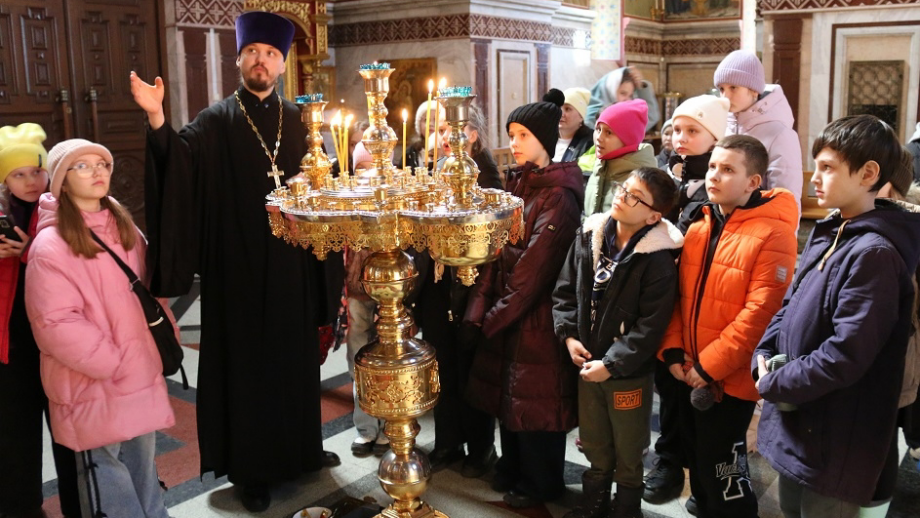 Во время весенних каникул ученики начальных классов школы №3 города Ханты-Мансийска посетили храм Воскресения Христова. Для ребят была организована увлекательная и познавательная экскурсия. Мероприятие провел настоятель храма пророка Божия Илии иерей Евгений Кизин, который также является членом Общественного совета при УМВД России по ХМАО – Югре. Отец Евгений рассказал школьникам о правилах поведения в храме, познакомил с его историей. Дети узнали о назначении алтаря, царских врат, иконостаса и о том, какая икона украшает его сейчас. Школьники с живым интересом слушали, активно отвечали на вопросы и уточняли детали. Священнослужитель также рассказал о православных молитвах, правилах крещения, значении свечей и основных православных праздниках. Поскольку экскурсия проходила накануне Пасхи, ребята узнали об особенностях Богослужений перед и после встречи светлого Христова Воскресения, а также о традициях этого светлого праздника. Затем, дети поднялись на клирос – место для певчих и чтецов, откуда открывался впечатляющий вид на весь собор.  В завершение экскурсии отец Евгений вручил каждому ребенку свечу, чтобы они могли поставить ее и каждый о своем помолиться.