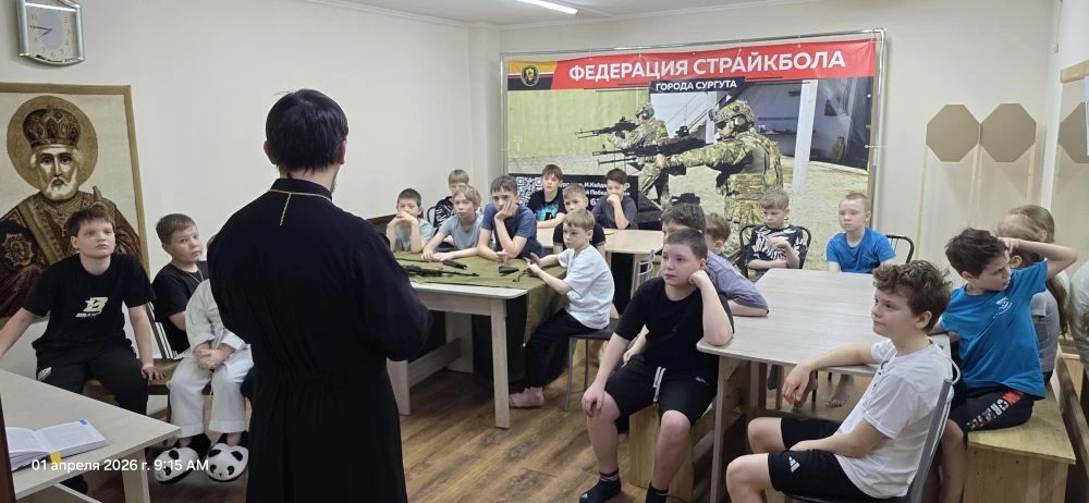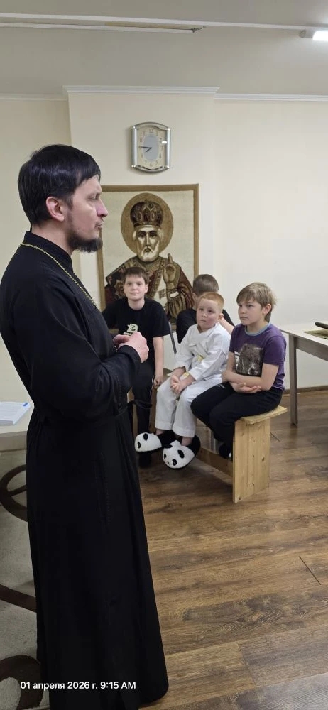 1 апреля 2026 года настоятель храма в честь святой мученицы Татьяны Римской г. Сургута иерей Дионисий Безносов провел встречу с детьми и рассказал о важности чтения православных книг.