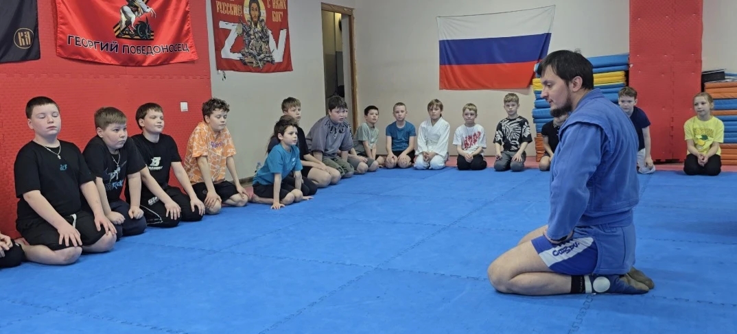 После беседы священнослужитель провел тренировку по борьбе САМБО.