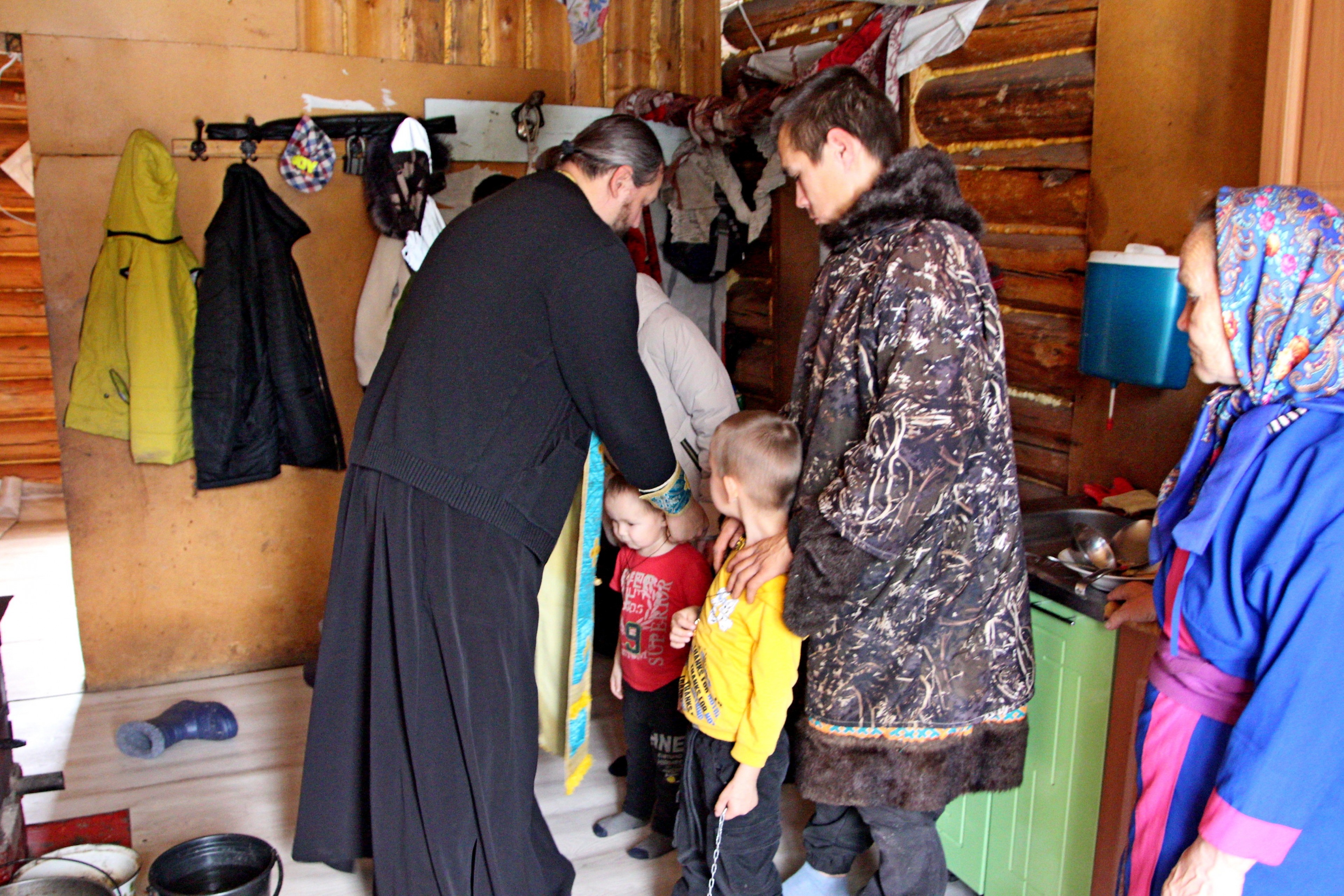 Батюшка посетил Федосьины юрты, провел теплую встречу – беседу с представителями коренных народностей ханты о вере в Бога, о спасении души, о Таинстве Крещения, рассказал о силе креста: «Крестик, который мы носим — это святыня, освещённая молитвой, в которой мы просим Господа помогать нам, защищать от искушений. После беседы с жителями по их просьбе отец Виктор провел чин освящения жилищ. Батюшка привез с собой и подарил жителям Федосьиных юрт Святое Евангелие, нательные крестики, иконы Спасителя, Пресвятой Богородицы, святых чудотворцев и целителей для молитвенной помощи в житейских нуждах, для пополнения знаний о вере — православные книги и молитвословы для взрослых и детей, книги для подготовки к исповеди. Маленькие жители получили от священника детскую литературу и сладкие подарки.