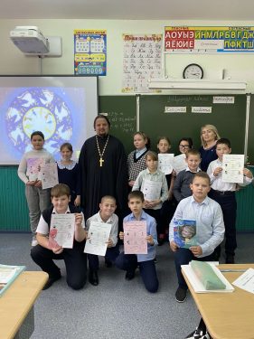 Настоятель храма в честь святых мучеников Флора и Лавра провел урок ОПК в четвертом классе СОШ «Сайгатина»