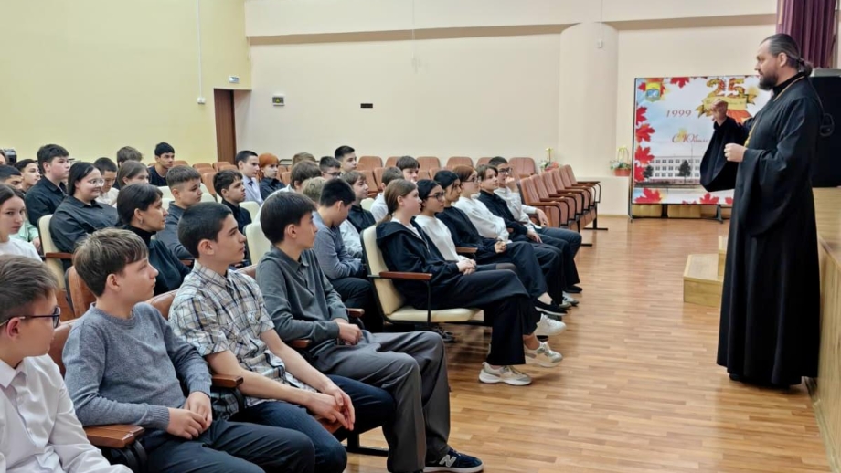 Настоятель прихода Храма Святой Троицы провел беседу с учащимися СОШ №1 о семейных ценностях.
