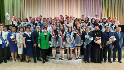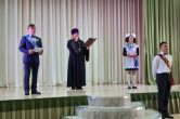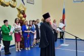 Священник поздравил учащихся с успешным окончанием учебного года и в частности сказал «Дорогие выпускники! От всего сердца желаю вам помощи Божией в благополучной сдаче экзаменов. Стойкости и мужества в бушующем океане страстей человеческих и чтобы вы через всю жизнь пронесли радость школьных лет в своем сердце».