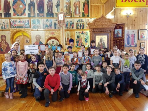 Нижнесортымские школьники рассказали прихожанам Свято-Тихоновского прихода стихотворения о святых защитниках Руси.
