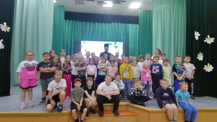Беседа священника о Троице в пришкольном лагере с.Угут