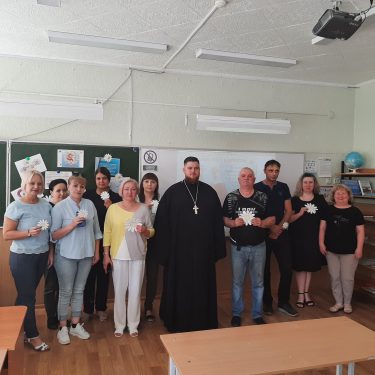 05 июля в МОУ СОШ №2 состоялась встреча клирика храма святого праведного Иоанна Кронштадтского иерея Валерия Вензы с рабочим коллективом. Темой дискуссии стала «Счастье в браке и без; что происходит с институтом семьи. Ценности семейных традиций.» Священник познакомил присутствующих с историей праздника Дня семьи, любви и верности и с покровителями христианской семьи благоверными князьями Петром и Февронией Муромских.