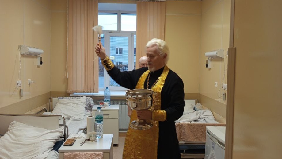 Настоятель Прихода больничного храма в честь иконы Божией Матери «Всецарица» иерей Вадим Пономарёв по просьбе медицинского персонала и пациентов окропил Святой водой хирургические корпусы Сургутской окружной клинической больницы.