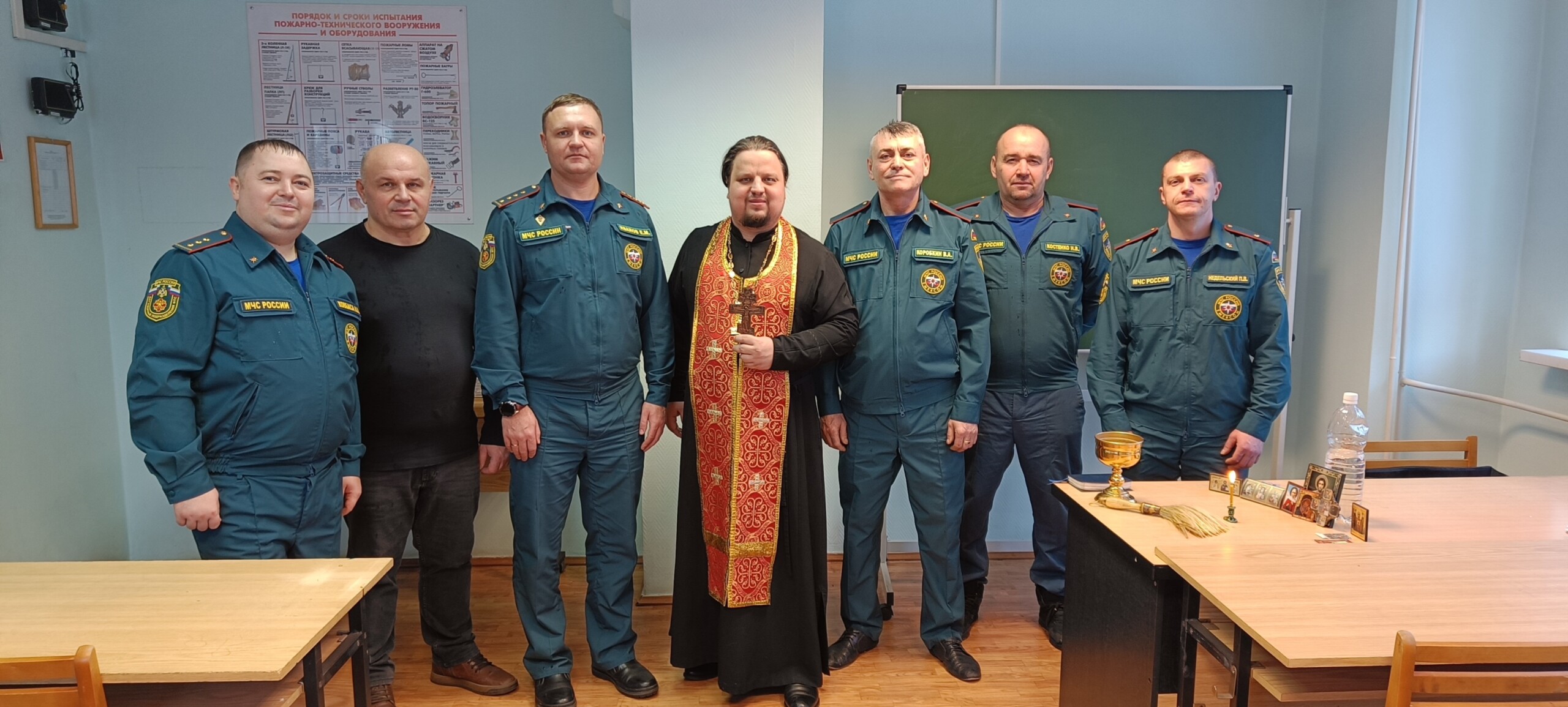 Иерей Даниил провел беседу с начальником 56 ПЧ Ивановым Евгением Михайловичем и с личным составом ПЧ, которые совершают охрану объекта защиты Сургутского ЗСК, в области пожарной безопасности. После беседы, вместе все совершили молитву на освящение ПЧ. Также был освящен дальний кордон.