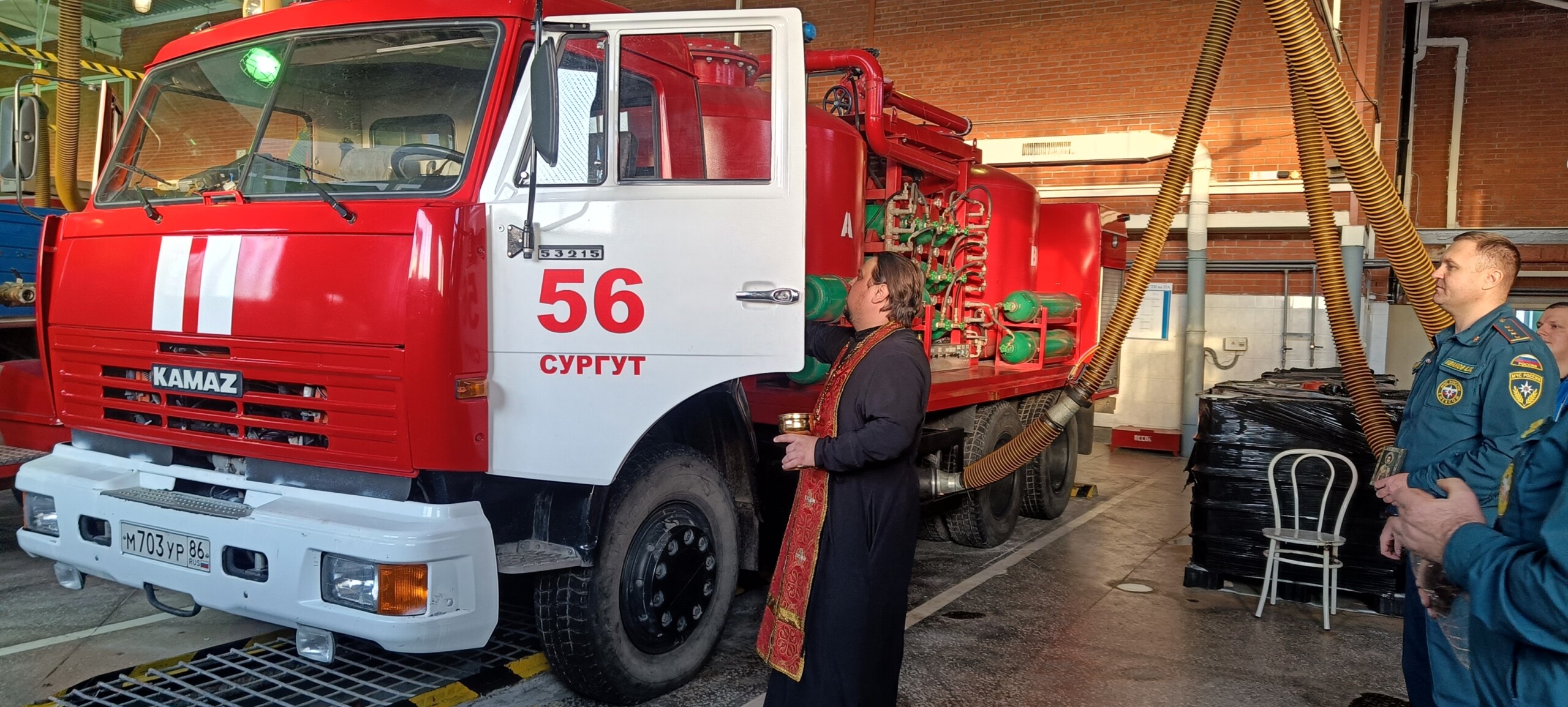 Иерей Даниил Долгушин, настоятель храма в честь святых мучеников Флора и Лавра, деревни Сайгатина, освятил 56 пожарную часть отряда ФПС ГПС – Сургутского филиала ФГБУ «Управление ДП ФПС ГПС №4».