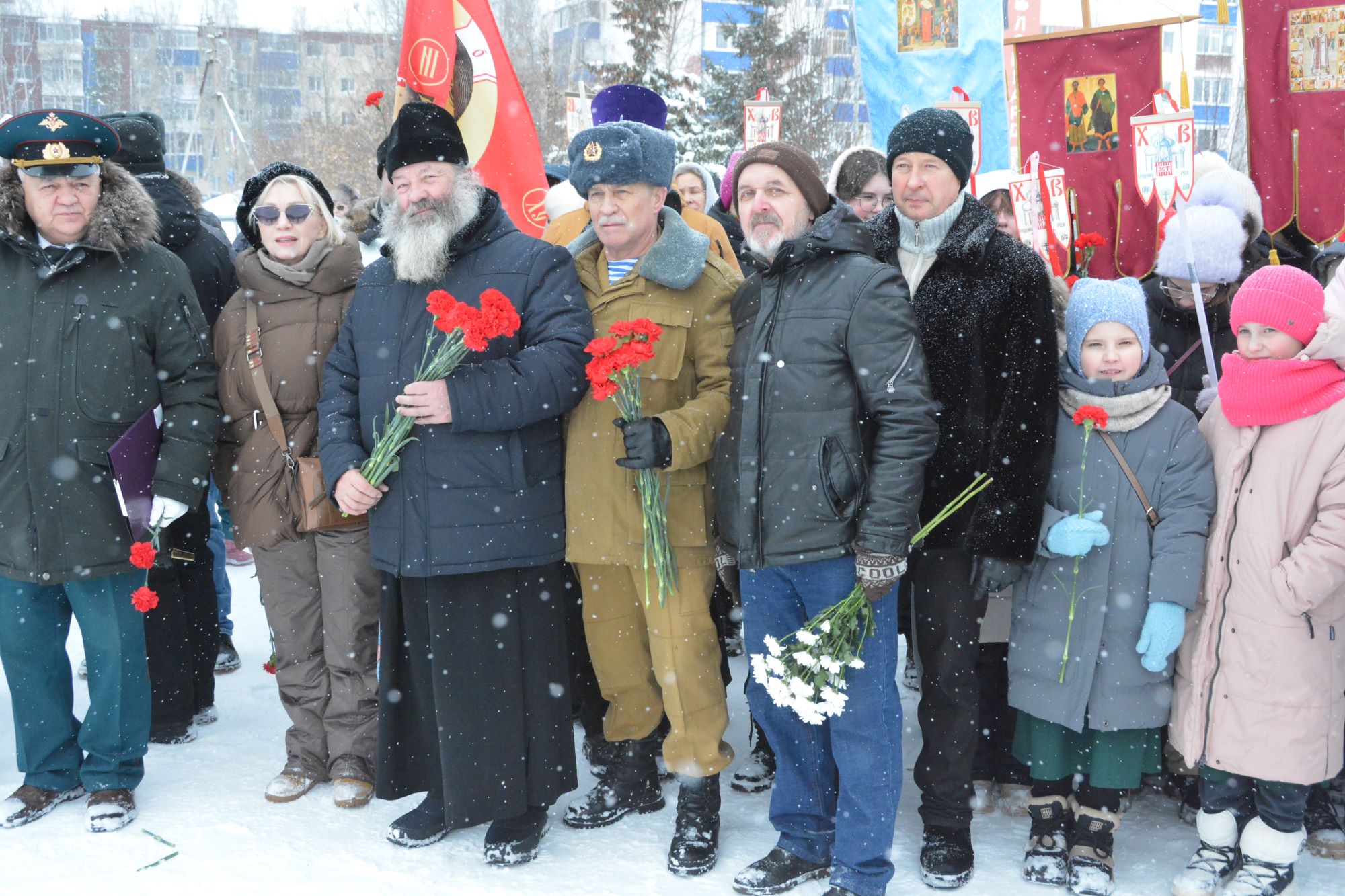 15 февраля 2025 года, в день вывода советских войск из Афганистана, состоялось торжественное возложение цветов к памятнику Верным сынам Отечества. Память воинов-интернационалистов пришли почтить настоятели приходов: протоиерей Николай Матвийчук, иерей Александр Сысоев, иерей Даниил Шумбасов, иерей Олег Саватеев, клирики храма Святого Духа: иерей Георгий Полуянов и иерей Иоанн Рассудов. В возложении цветов к памятнику приняли участие воспитанники Воскресной школы прихода храма Святого Духа, Нефтеюганской православной гимназии, молодежного движения «Югра молодая православная». Ученики Воскресной школы торжественно шли на мероприятие под знаменами Нерукотворного Спаса и с хоругвями. Протоиерей Николай Матвийчук поздравил всех присутствующих с праздником Сретения Господня и сказал, что воины-интернационалисты – это пример верности и чести для подрастающего поколения. С особым чувством благодарности и скорби все присутствующие возложили цветы в память о погибших в Афганистане советских солдатах.