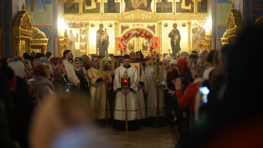 В ночь с 19 на 20 апреля 2025 года православные христиане Нижневартовска, как и верующие по всему миру, собрались в храмах, чтобы встретить самый главный праздник церковного года — Светлое Христово Воскресение, Пасху Господню. В этом году праздник выпал на позднюю дату, что связано с особенностями расчета дня Пасхи по лунно-солнечному календарю. Центром праздничных мероприятий в Нижневартовске стал храм Рождества Христова, где прошла ночная пасхальная служба. Богослужение началось с крестного хода — традиционного шествия вокруг храма. Под звон колоколов духовенство и прихожане обошли церковь, символизируя встречу воскресшего Спасителя. Затем в переполненном храме состоялась праздничная Божественная литургия, которую возглавил настоятель храма протоиерей Сергий Шевченко. В ходе службы были зачитаны пасхальные послания Святейшего Патриарха Московского и всея Руси Кирилла и митрополита Павла, в которых иерархи поздравили верующих с великим праздником, призвали хранить веру и нести свет Христова Воскресения в мир. После завершения литургии состоялось освящение пасхальных куличей, яиц и другой снеди, которую прихожане приготовили для праздничного стола.