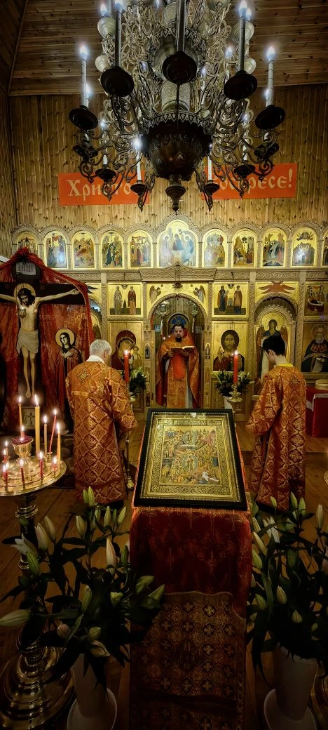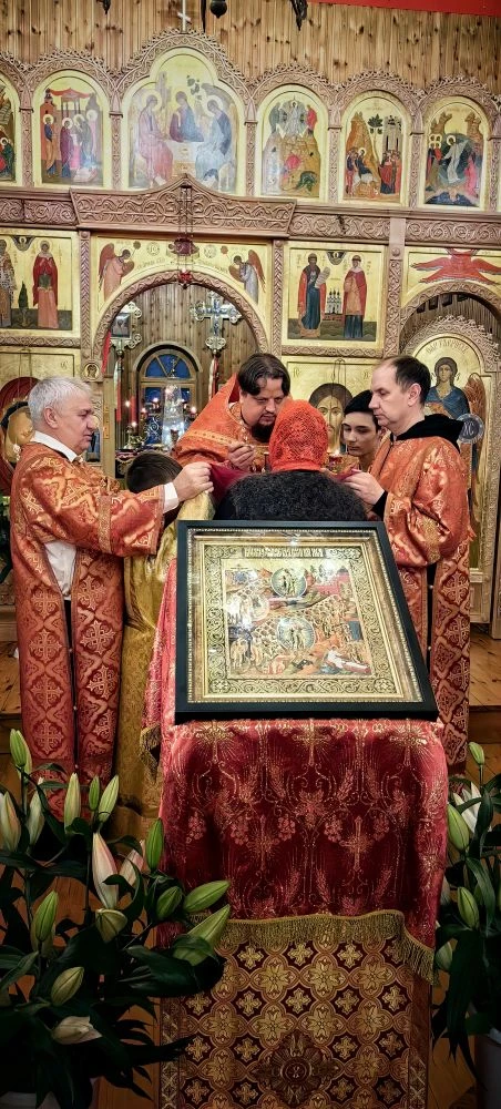 В конце службы иерей Даниил Долгушин, настоятель храма, поздравил всех прихожан с Праздником Пасхи, Воскресения Христова, также освятил пасхальную снедь.  Прихожанам были розданы сладкие подарки.