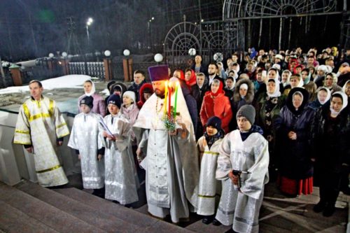 Во время богослужения иерей Виктор снова и снова с крестом, трехсвечником и кадилом выходил к народу из алтаря и радостно приветствовал всех словами: «Христос Воскресе!», на что верующие отвечали: «Воистину Воскресе!»
