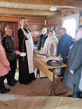 За Богослужением отец Виктор поздравил всех со Светлым Христовым Воскресением и пожелал добра, благоденствия, мира и любви всем родным, близким и освятил святой водой куличи и пасхи, принесенные прихожанами.