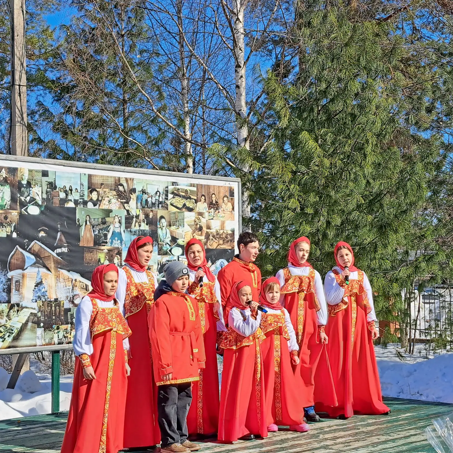На сцене проходил концерт, в котором приняли участие: воспитанники Воскресной школы, детские и взрослые коллективы деревни Сайгатина и поселка Солнечного.