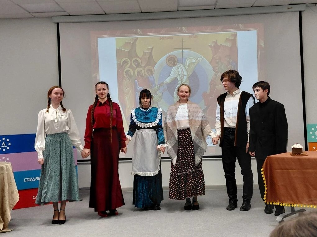 Ученики младших классов не только читали трогательные стихи, но и доступно рассказали слушателям об историческом событии Воскресения Христова, объяснив его спасительное значение для каждого человека. А учащиеся 8 и 9 классов представили весёлый и одновременно поучительный спектакль, который вызвал улыбки и заставил задуматься о важных жизненных истинах.