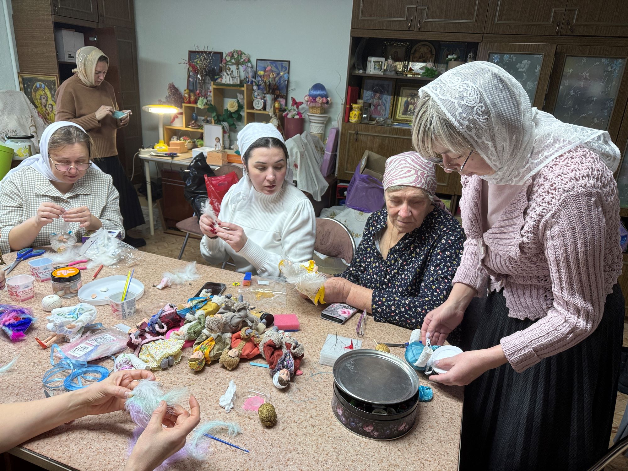 Полным ходом идет подготовка к Рождеству Христову во взрослой Воскресной школе храма Святого Духа г.Нефтеюганска. Мастер-класс по изготовлению подарочных кукол к Рождеству Христову проводит педагог Румянцева М.А. С большим увлечением и интересом изучают непростую науку по изготовлению кукол слушатели курсов, вникая в тонкости ручной работы. В этом году и украшения на елочках внутри храма отличаются тонкой работой рукодельниц швейной мастерской.