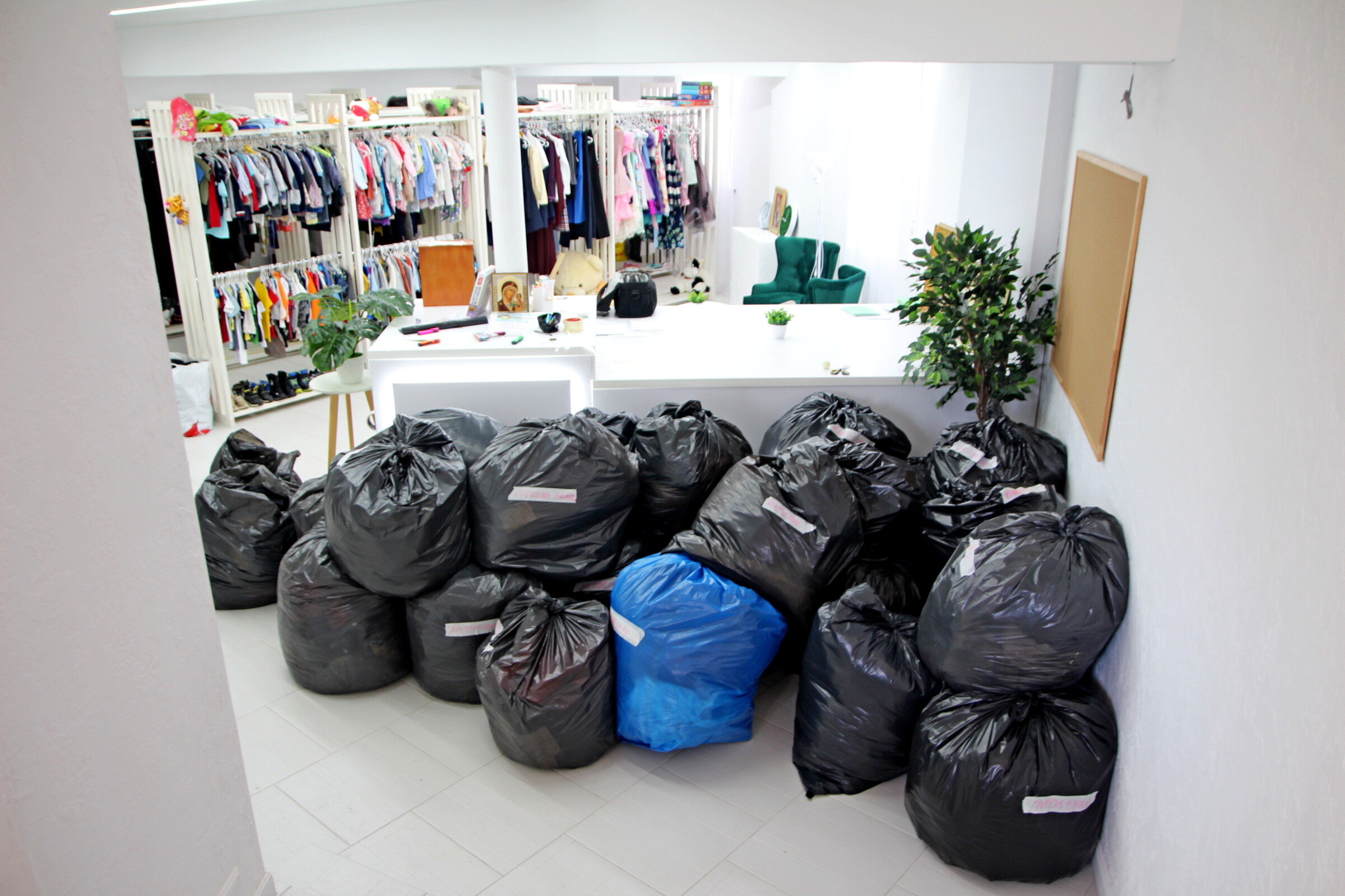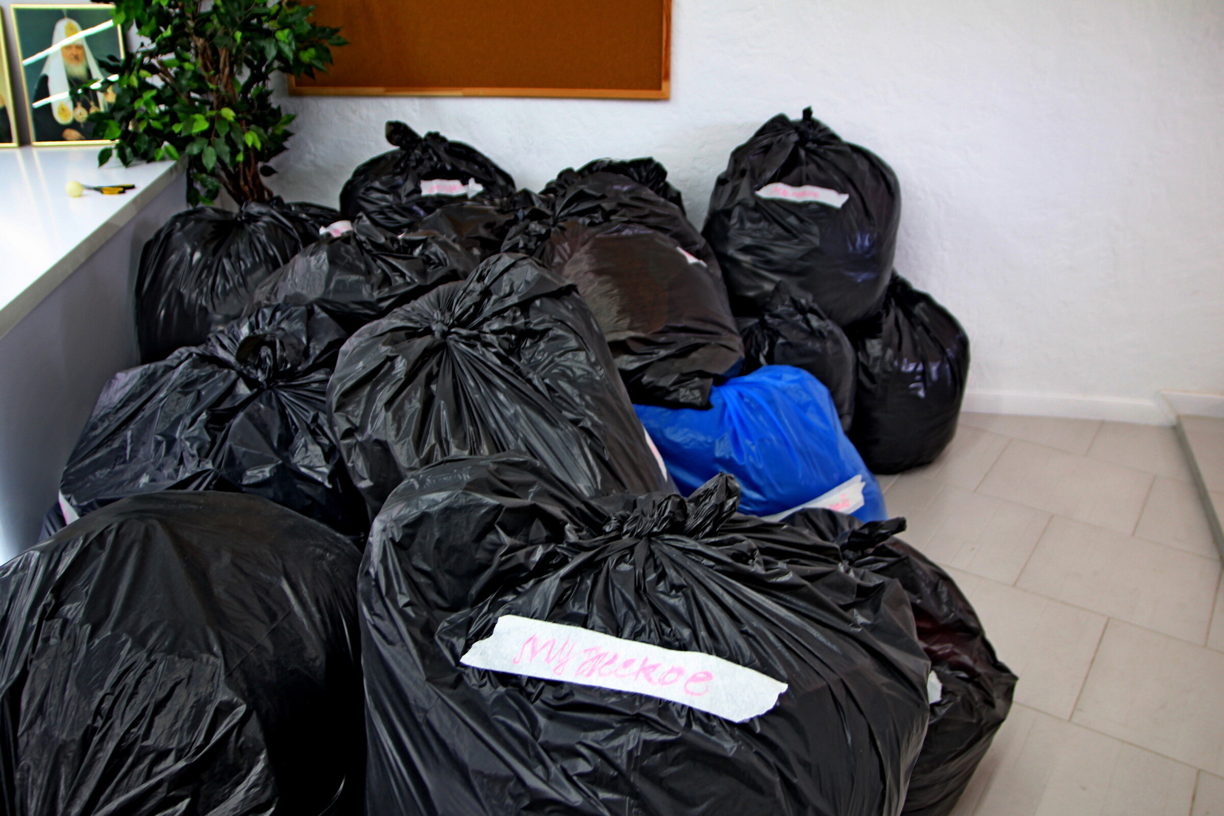 Работники Социальной лавки заботливо подготовили к отправке 30 мешков мужской и женской одежды и обуви, предметы, необходимые в обиходе.