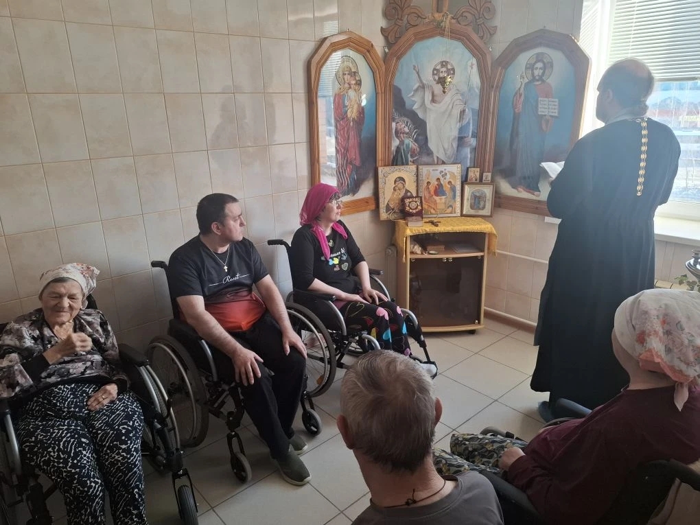 31 марта 2026 года настоятель Прихода храма в честь великомученика Феодора Стратилата пгт. Федоровский, иерей Димитрий Галицкий и клирик Прихода иерей Богдан Черныш посетили БУ ХМАО-Югры «Сургутский районный комплексный центр социального обслуживания населения», совершили Таинство Исповеди и Таинство Причастия в котором приняли участие 10 человек. Также окропили святой водой отделение интерната и получателей социальных услуг.