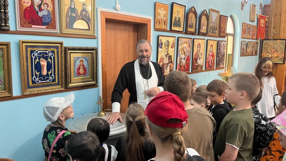 16.06.2025 года дети из пришкольного лагеря посетили храм Казанской Божией Матери с.Угут. Настоятель храма иерей Алексий провел для ребят познавательную и интересную экскурсию. Батюшка подробно рассказал о храме, о его святынях. Ребята смогли рассмотреть иконы, а также узнали об их истории. Наибольший интерес у детей вызвал колокольный звон. Поднявшись наверх колокольни, они сами смогли поучаствовать в этом увлекательном для них занятии. Для детей экскурсия в храм стала настоящим уроком человечности, которая обязательно оставит духовный след в их маленьких сердцах.