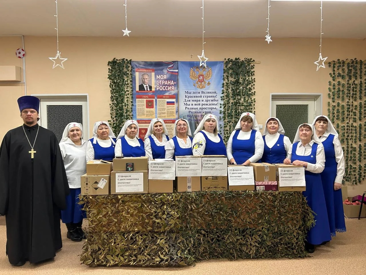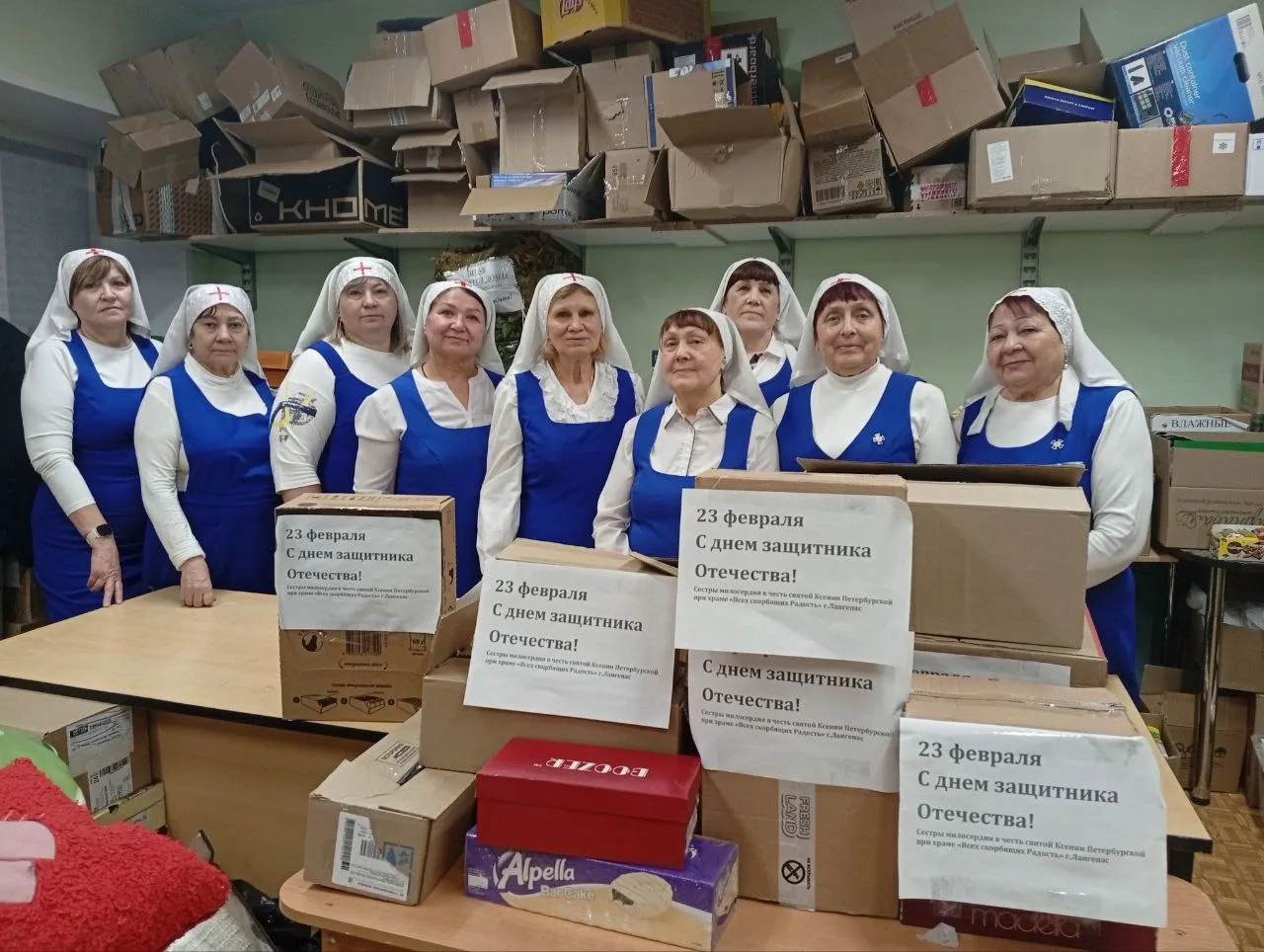 17 февраля 2026 года, благочинный Лангепасского благочиния, настоятель храма в честь иконы Божией Матери «Всех скорбящих Радость» в г.Лангепас и сестры из сестричества святой блаженной Ксении Петербургской, поздравили наших бойцов СВО с наступающим праздником Защитника Отечества.