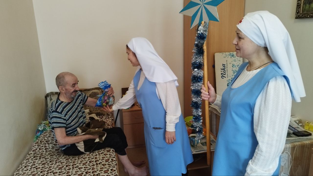В дни празднования Рождества Христова сестричество храма Святого Духа выезжает с поздравлениями к пожилым людям, тяжелобольным жителям города, несовершеннолетним подопечным социального учреждения БУ «Нефтеюганский центр социального обслуживания населения «Защита»». Сестры милосердия храма Святого Духа поют Рождественские колядки и дарят сладкие подарки на дому в рамках акции «Подари Рождество». Забота сестер уже много лет встречает теплый прием со стороны опекаемых ими горожан.