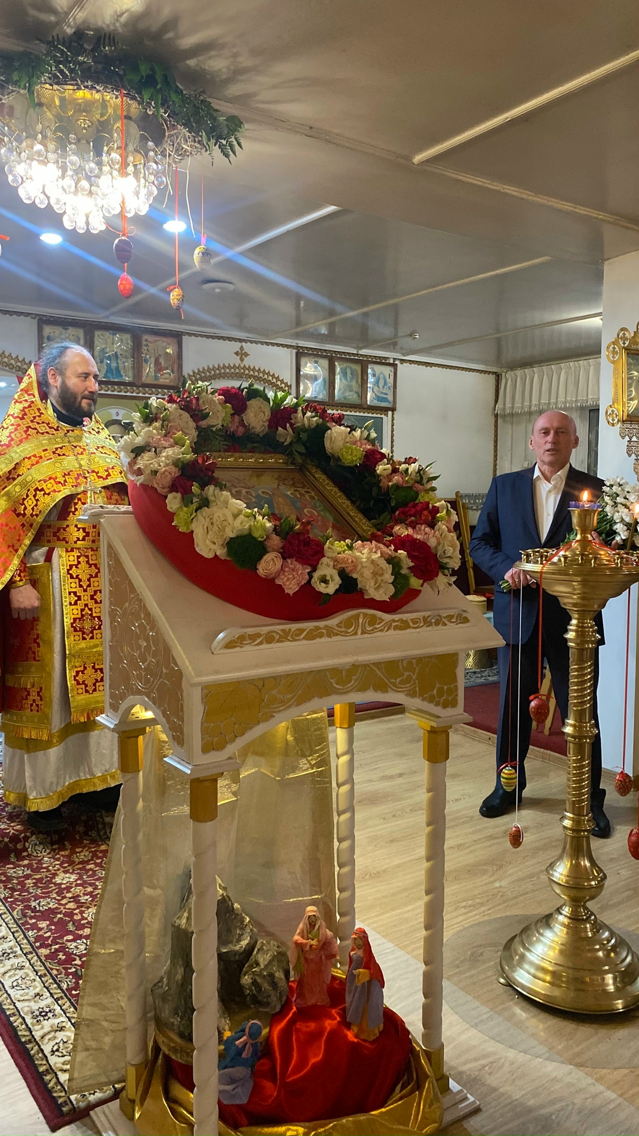 По традиции, после службы состоялось освящение пасхальных куличей, яиц и других праздничных яств. В эту ночь храм наполнился особой радостью и светом, объединяя всех в общей молитве.