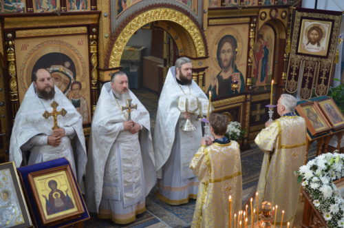 По окончании службы отец Тарасий поздравил всех молящихся за богослужением прихожан с праздником Вознесения Господня.