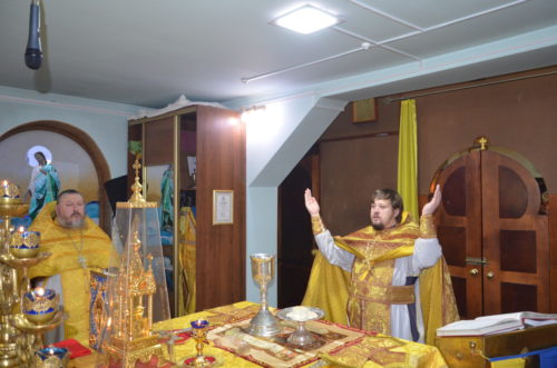 19 декабря, в день памяти святителя Николая, архиепископа Мир Ликийских чудотворца, праздничную Божественную Литургию при большом стечении прихожан возглавил настоятель Прихода храма в честь иконы Божией Матери « Знамение» иерей Леонид Бартков. Его Преподобию сослужили клирики храма иерей Константин Мемячкин, иерей Тарасий Борозенец.