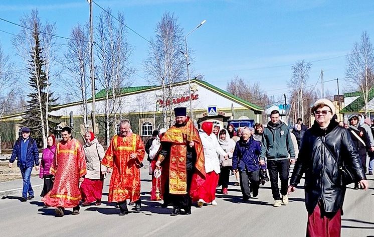 27 апреля 2025г. настоятель Прихода храма Святой Троицы пгт.Пойковский иерей Виктор Мурзаков совершил праздничную Божественную литургию. Ежегодно прихожане пойковского храма, причастившись на литургии Святых Христовых Таин, в восьмой день после Светлого Христова Воскресения, на праздник Антипасхи, идут крестным ходом по улицам городского поселения в сопровождении праздничного колокольного звона. Хор певчих прихода, исполняющих пасхальные песнопения и тропарь Пасхи, радостными пасхальными приветствиями «Христос Воскресе!» — «Воистину Воскресе!», смогли донести до окружающих огонек веры в живого Бога, рассказать о Его воскресении, поделиться с пойковчанами радостью Пасхи.