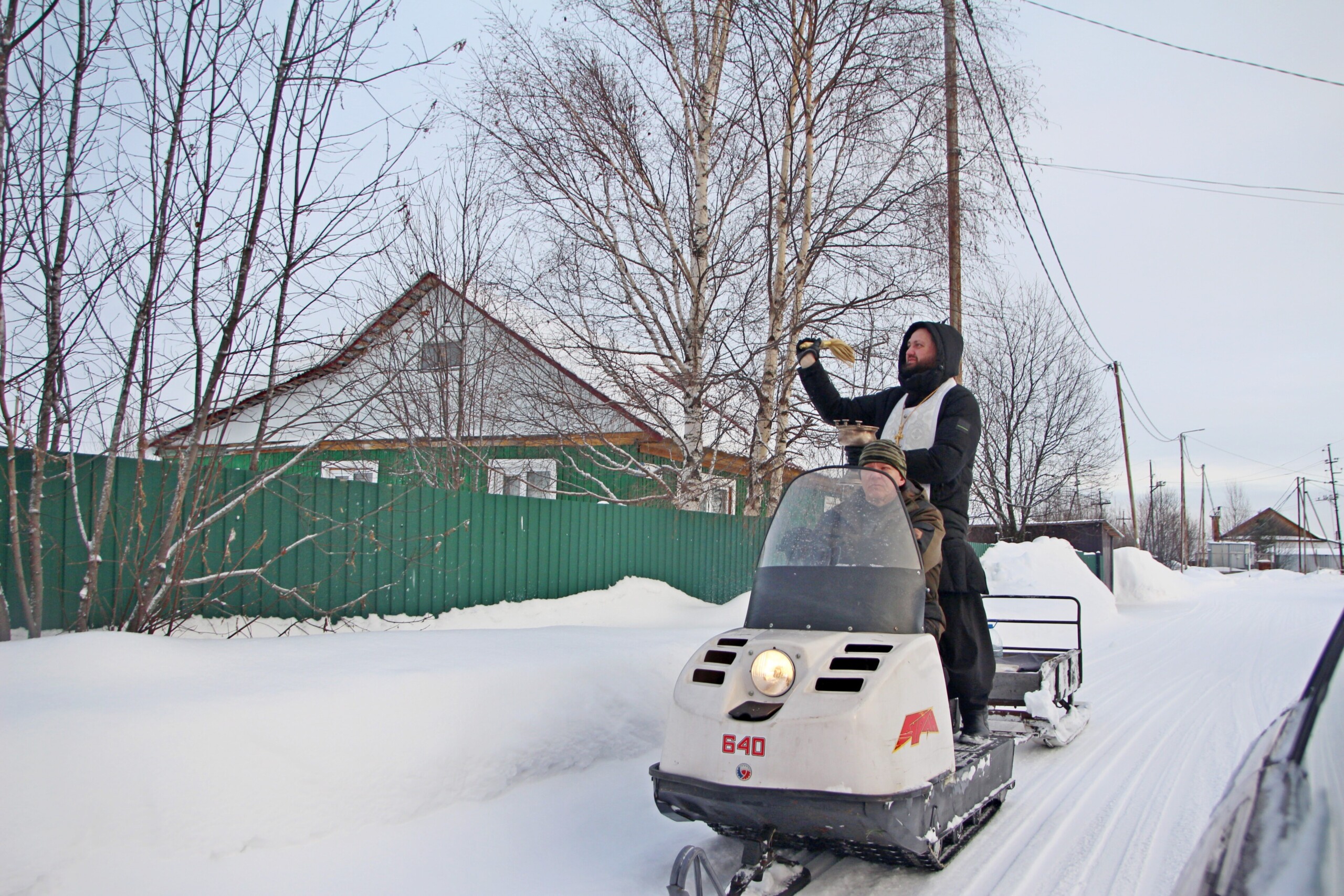 Иерей Виктор отслужил чин Великого освящения воды, а затем, по просьбам местных жителей, отец Виктор Мурзаков окропил святой Крещенской водой все поселение Лемпино, объехав территорию на снегоходе. На здоровье, дорогие земляки! Вера наша будет нам во спасение.