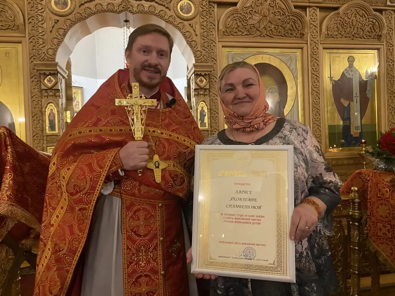 12 апреля в праздник Пасхи Христовой в храме святителя Николая Чудотворца посёлка Излучинск состоялась праздничная ночная Литургия. После службы настоятель храма преподал архиерейские грамоты матерям священников Спамбетовой Ларисе и Альниковой Наталье. Днём в КДЦ «Арлекино» прошел пасхальный концерт с участием воскресной школы и творческих коллектив поселка. Иерей Георгий Болотов обратился ко всем присутствующим с поздравительным словом. В конце мероприятия священник подарил детям куличи.