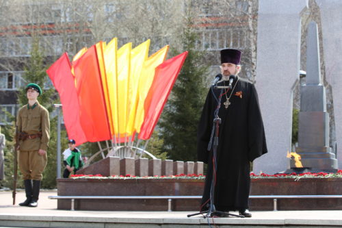 9 мая 2022 года благочинный Сургутского благочиния протоиерей Антоний Исаков со штатным священником храма великомученика Георгия Победоносца иереем Григорием Беляниным, приняли участие в праздничном митинге, посвященном 77-й годовщине Победы в Великой Отечественной войне.