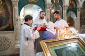 19 августа на в храме в честь Всех святых г. Нефтеюганска состоялась праздничная Божественная Литургия. По заамвонной молитве настоятель храма освятил плоды нового урожая. В своём слове о. Александр напомнил о важности молитвы в жизни христианина и как она может изменить человека