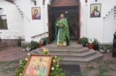 В день праздника Святой Троицы на Приходе праведного Лазаря Четверодневного г. Сургута иеромонах Владимир (Ванюков) совершил Божественную литургию. Настоятелю сослужил иерей Илья Матвийчук. В связи с ремонтом храма служба проходила на прихрамовой территории.