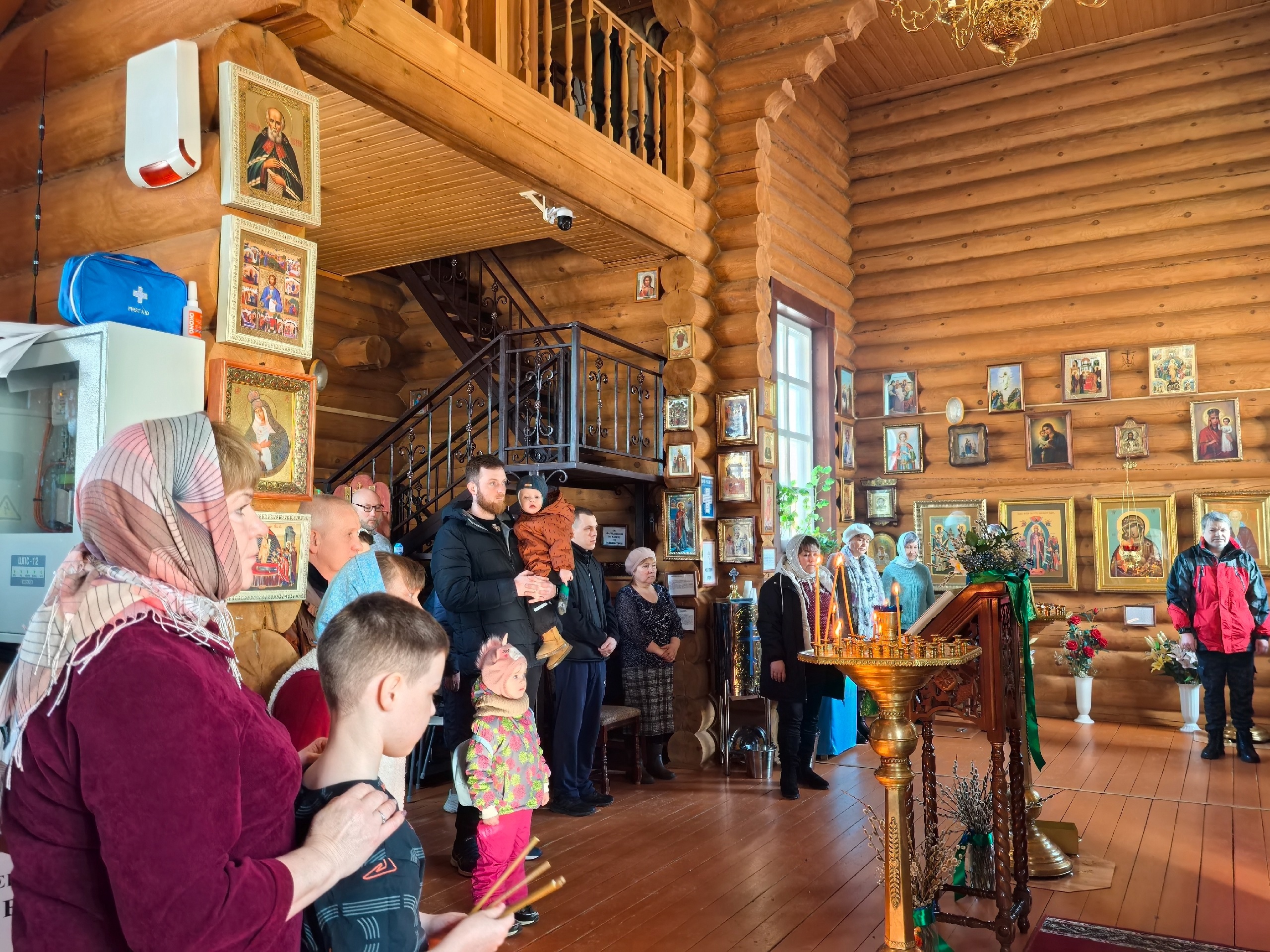 13 апреля 2025 года, в Неделю 6-ю Великого поста (ваий), Входа Господня в Иерусалим, настоятель храма в честь святого преподобного Евфимия Великого д. Шапша Ханты-Мансийского района иеромонах Роман (Киселев) совершил Божественную литургию в упомянутом храме.