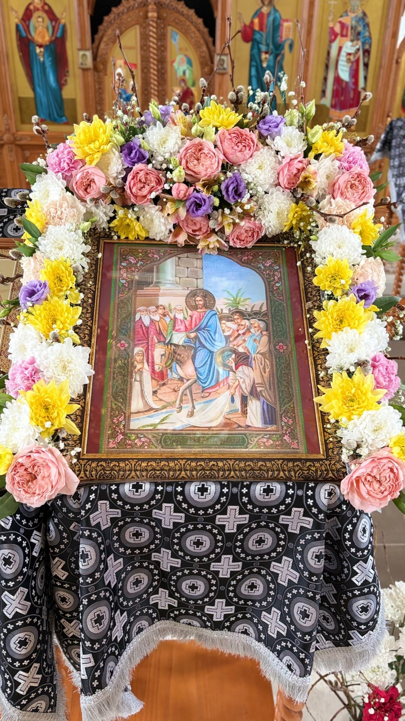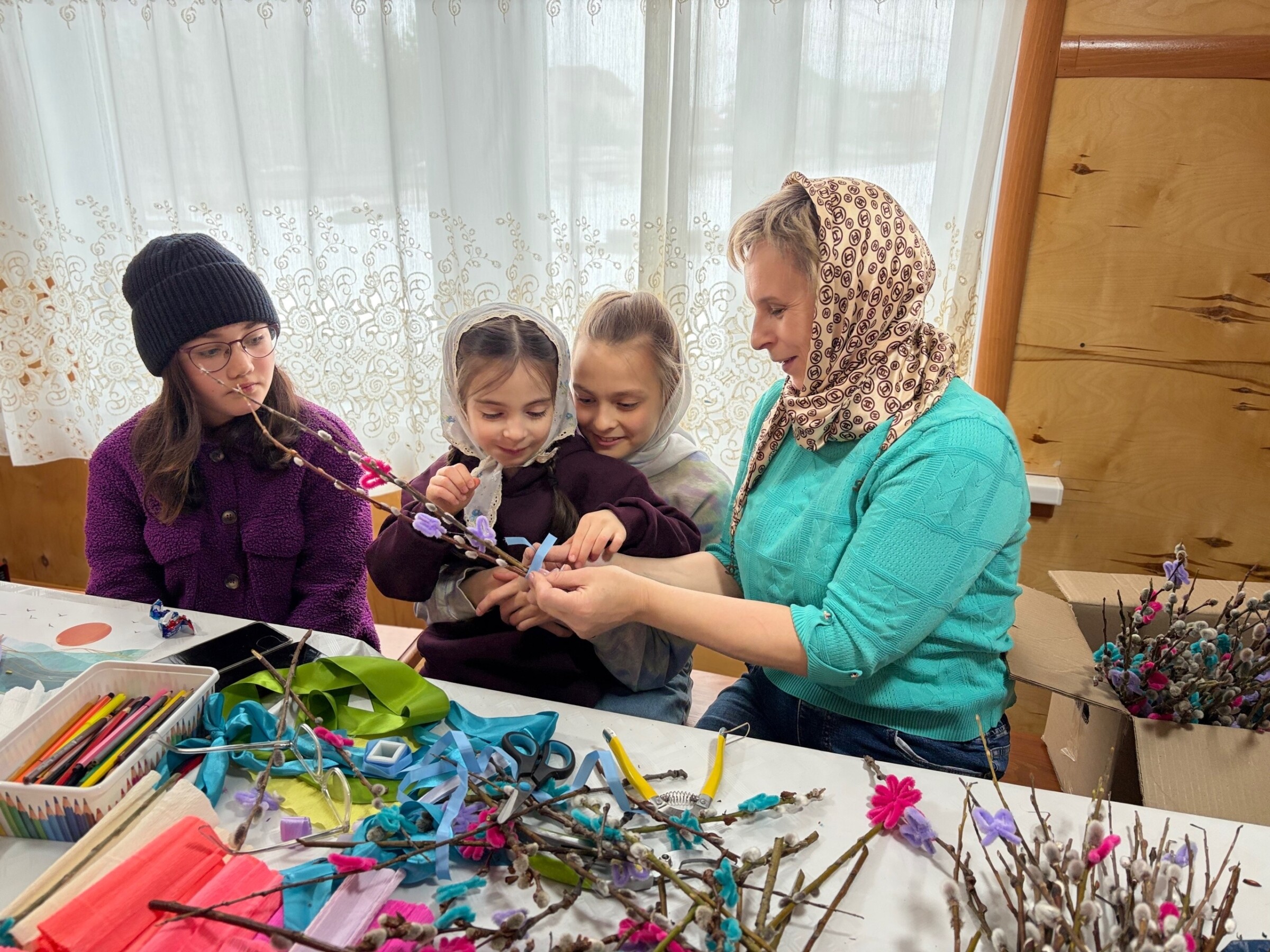 Поскольку в России пальмы не растут, местные верующие заменяют их веточками вербы, отсюда и второе название праздника — Вербное воскресенье. Этот праздник открывает Страстную неделю, завершающуюся светлым праздником Пасхи. Накануне ребята из воскресной школы при храме украшали вербу для прихожан.
