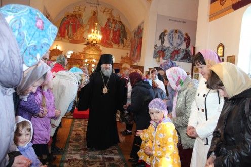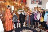 Вечером в храме п.г.Междуреченский Владыку встречали духовенство прихода: настоятель — протоиерей Сергий Швалёв, клирики- иерей Александр Черанёв и иерей Павел Шутов, многочисленные прихожане, учащиеся воскресной школы.