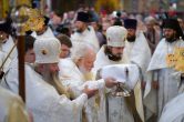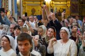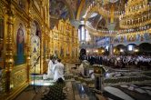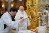На сугубой ектении были вознесены особые прошения, Предстоятель Русской Церкви прочитал молитву о Святой Руси.