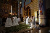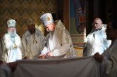 Затем Святейший Патриарх Кирилл огласил свой указ: «В связи с завершением строительства Свято-Троицкого собора г. Сургута Ханты-Мансийского автономного округа — Югры усвоить означенному собору статуса кафедрального, с правом совершения в нем Божественной литургии с отверстыми царскими вратами по «Отче наш». Преображенскому собору города Сургута, ранее имевшему статус кафедрального, быть приходским с сохранением наименования «Преображенский собор города Сургута» и с правом совершения в нем Божественной литургии с отверстыми царскими вратами по «Отче наш»».