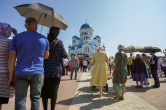 Установка главного купольного шатра высотой более 13 метров и всех остальных куполов собора, то есть 9 основных и 8 декоративных, производилась без помощи вертолета, только башенным краном.