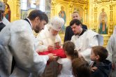 За Литургией молились настоятельница женского монастыря в честь иконы Божией Матери «Умиление» г. Сургута игумения Георгия (Алгинина) и насельницы обители, члены Православного братства Ханты-Мансийской епархии, учащиеся Православной гимназии имени святых равноапостольных Кирилла и Мефодия г. Ханты-Мансийска и Нижневартовской православной гимназии в честь Казанской иконы Божией Матери, прихожане и паломники.