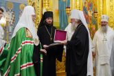 В благодарность за труды на благо Святой Церкви Святейший Владыка вручил митрополиту Павлу памятные крест и панагию.