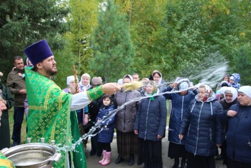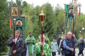 По завершении богослужения вокруг храма прошел крестный ход, после которого отец Виктор поздравил молящихся с престольным праздником храма и всего поселка.