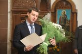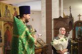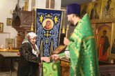 За богослужением иерей Виктор также поздравил старейшую прихожанку храма Резцову Марфу Степановну с 90-летием, вручив ей памятный подарок.