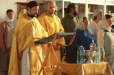 По окончанию богослужения и крестного хода, для участников богослужения было приготовлено угощение на храмовой территории.