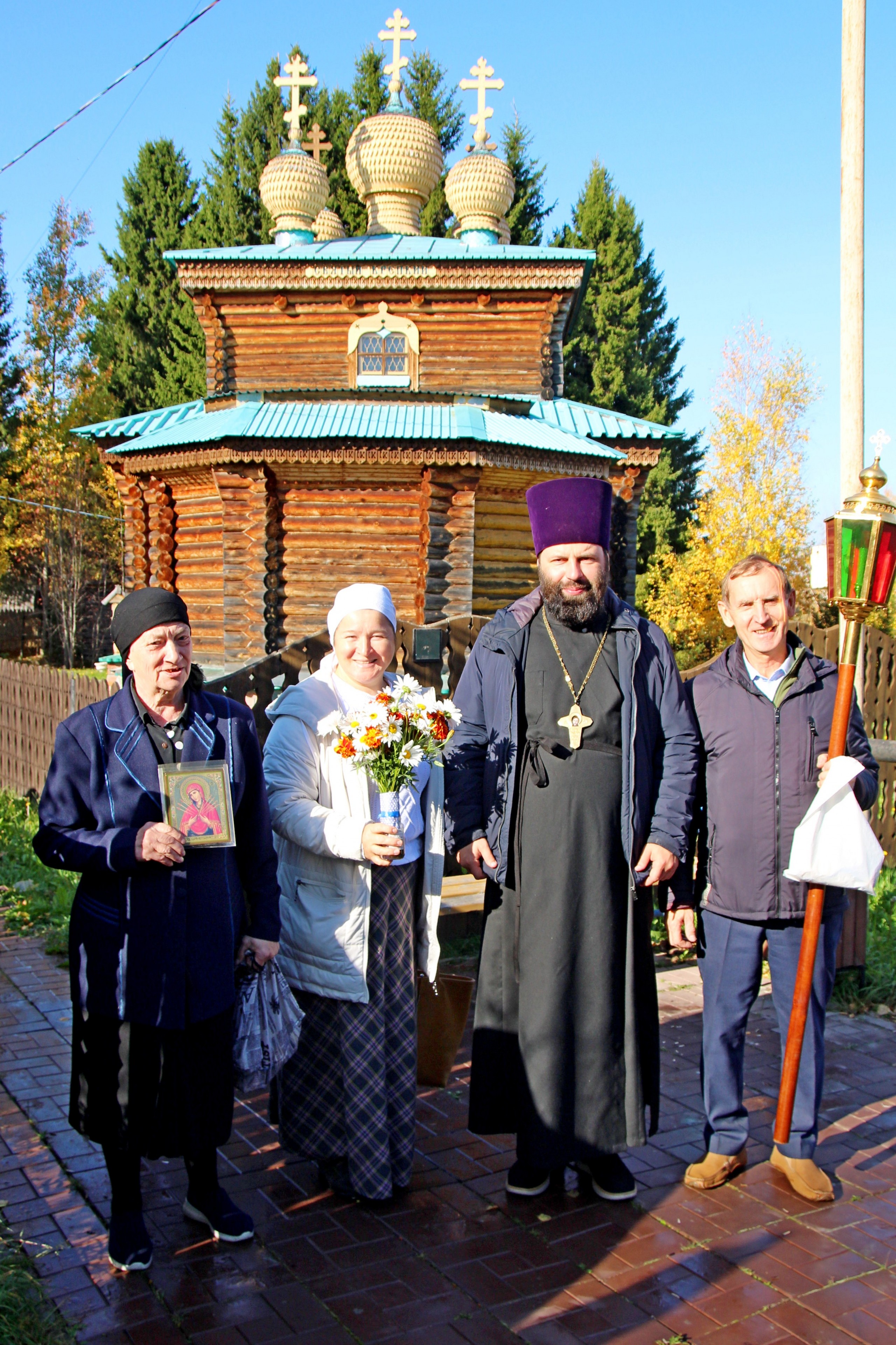 По окончании богослужения состоялся крестный ход вокруг храма. Батюшка тепло поздравил всех присутствующих и сказал, — «Праведный Симеон Верхотурский — это ангел нашего храма, он ждет нас всех в дни своего праздника. На протяжении более 300 лет люди молятся и исцеляются от недугов, благодаря молитвам праведника пред Богом, он и сегодня всех нас согревает своим теплом, согревает сердце каждого человека, который хочет найти в Господе смысл своей жизни».