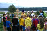 Во время крестного хода на месте строительства храма была совершена молитва, участие в которой приняли дети из поселкового детского лагеря. Батюшка рассказал ребятам о святом пророке Илие и окропил всех святой водой.