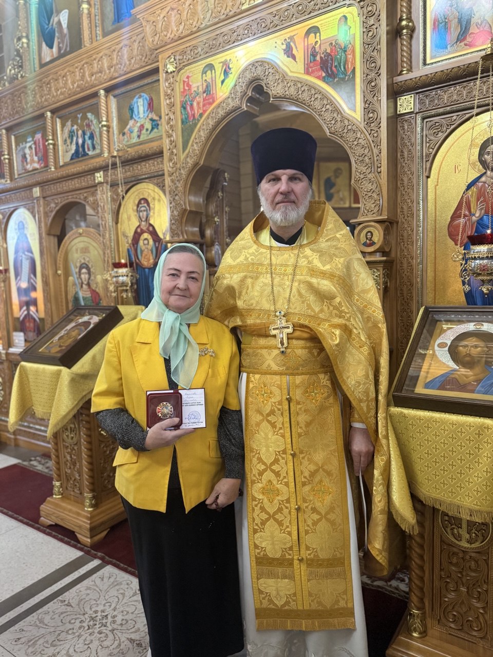 В своем пастырском слове к собравшимся отец Сергий напомнил житие и подвиги святого благоверного князя Александра Невского, призвал молиться за наших правителей и поздравил всех с престольным праздником, а затем наградил тружеников храма и активных прихожан памятными знаками «10-летие Ханты-Мансийской митрополии».